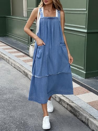 Cicy Bell Women's Denim Overall Dress Casual Adjutable Strap Back Drawstring Loose Jumper Bib Maxi Dresses with Pockets 1