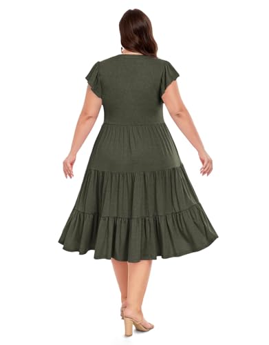 Moon Wood Womens Plus Size V Neck Ruffle Midi Dress 2025 Summer Casual Flowy Tiered Dresses with Pockets 4