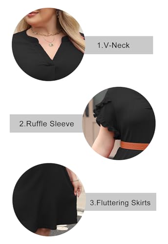 Celkuser Plus Size Summer Casual Dresses for Women V Neck Ruffle Cap Short Sleeve Flowy Midi Dress with Pocket 2