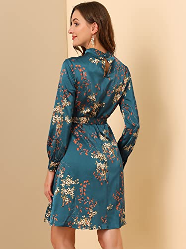 Allegra K Women's Mock Neck Swing Knee Length Long Sleeve A-line Floral Dress 5