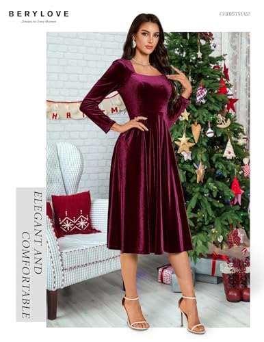 BeryLove Women Velvet Dress Cocktail Party Evening Dresses Long Sleeve Wedding Guest Formal Dresses 5