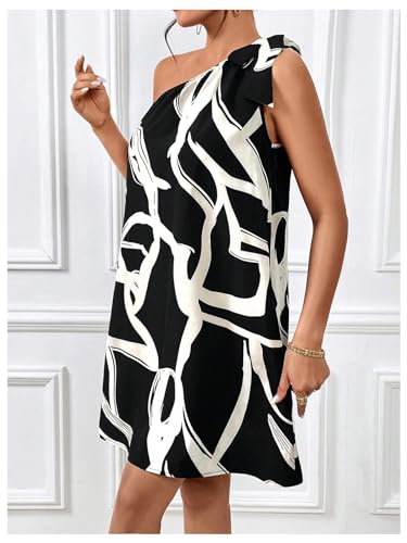 Floerns Women's Allover Print Knot One Shoulder Sleeveless Casual Tunic Dress 6
