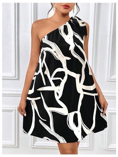 HOT ! Floerns Women's Allover Print Knot One Shoulder Sleeveless Casual Tunic Dress