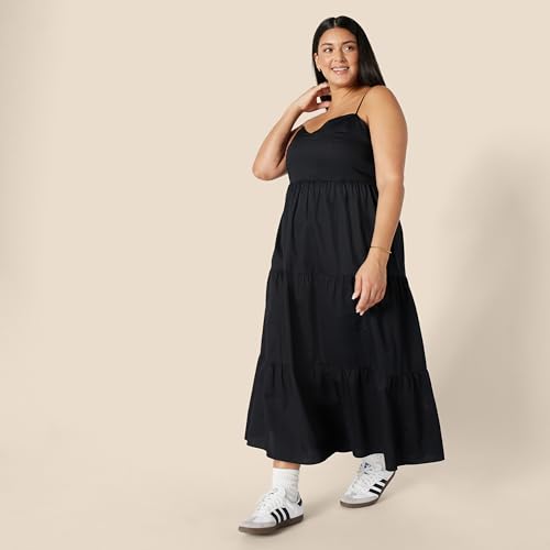 Amazon Essentials Women's Fit and Flare Empire Waisted Cotton Sateen Tiered Maxi Dress 1