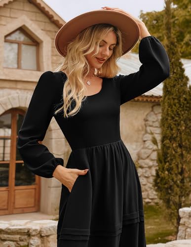 GRACE KARIN Long Sleeve Dresses for Women 2025 Fall Outfits Puff Crewneck Wedding Guest Casual Dresses with Pockets 1