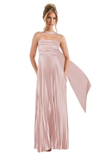 More information about Satin Halter Bridesmaid Dresses for Women Strapless A Line Prom Dress 2025 Ruched Long Formal Gown with Scarf