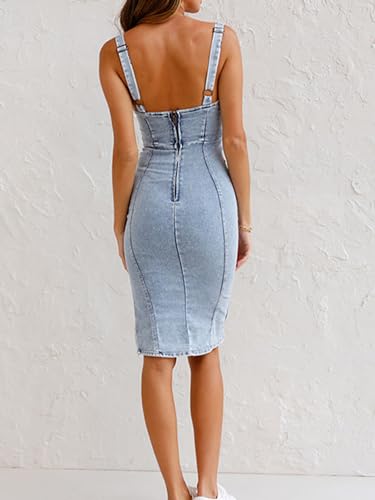 • 【Fashion Design】The slim fit of the women's denim bodycon dress accentuates the curves of an "S" figure, while the knee-length length creates a sexy and elegant vibe. Sleeveless denim dresses will fit your body perfectly and shape your figure, gripping every inch of your body with a considerable smoothing effect.