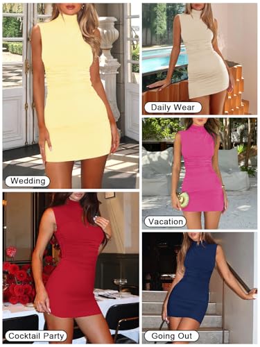 Women's Sexy Mock Neck Dress for Women Sleeveless Ruched Bodycon Dresses Turtle Neck Cocktail Party Mini Dress 6