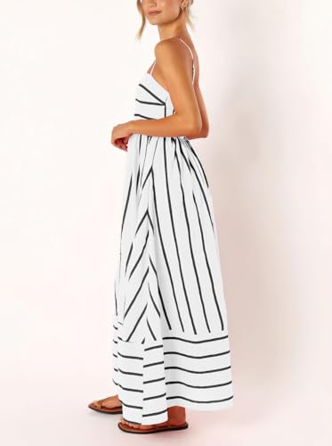 • 【STYLISH DESIGN】This sexy striped spaghetti straps maxi dresses for women features sleeveless, backless, square neck, high waisted, slim fit, swing hem, a line type and cut out design on back make this cami dress cute and stylish. This maxi sundress is perfect for the woman who wants to keep charming & comfy all the time.