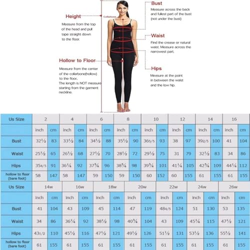 • Size: Please refer to the left Size Chart before purchasing. It is more accurate to use our size chart to choose your size. If the standard size does not suit you, please provided us the measurements of bust, waist, hips and top of your head to your toe (without shoes)