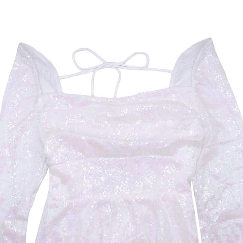 BOLLEY JOSS Women's Sequin Mini Dress Square Neck Self Tie Backless Sparkly Long Flare Sleeve Ruched Swing Dress 6