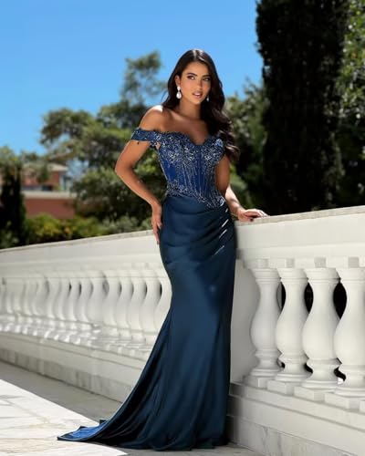 More information about Satin Prom Dresses for Women 2025 Off Shoulder Mermaid Formal Evening Party Gowns with Slit