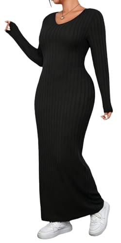 More information about Women's Long Sleeve Maxi Dress Solid Color V Neck Elegant Bodycon 2025 Fall Winter Dresses Evening Party