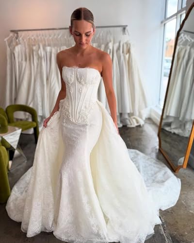 More information about Mermaid Wedding Dresses for Bride 2025 Rhinestones Laces Applique Bridal Dress with Detachable Train