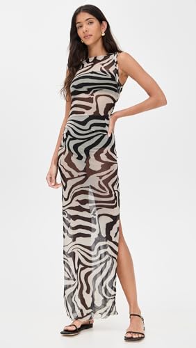 • Ruched detailing, Thigh-high side slits, Tiger print, Ties at shoulders