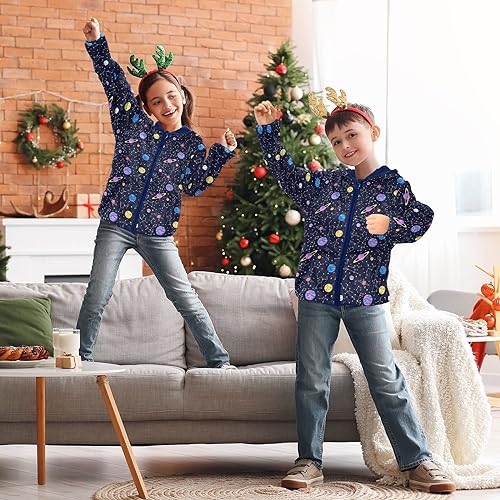 Space Galaxy Constellation Boys Fleece Hoody Jacket Zip Up Coat Warm Fall Winter Plush Jacket Long Sleeve Outerwear 6