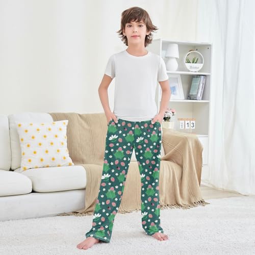 Frog Strawberry Floral Boys Long Pants Soft Trousers Elastic Waist Kids Lounge Bottoms with Pockets S-XL 4