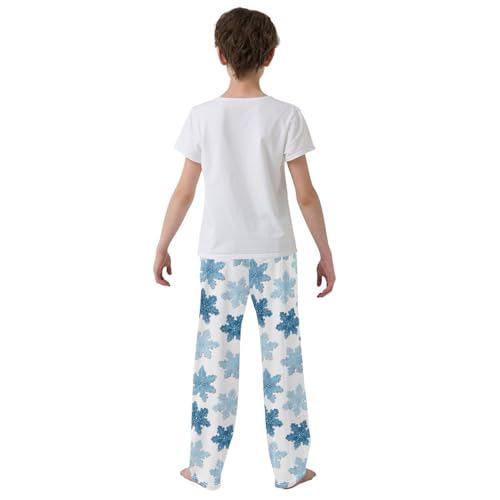 Christmas Pajama Pants Snowflakes White Blue Long Sleep Pants Lounge Bottoms 7