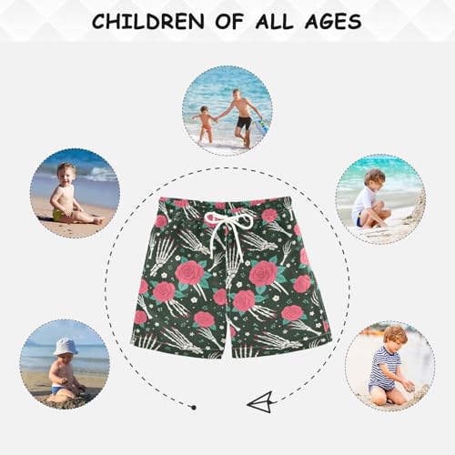 Boys Swim Trunks Quick Dry UPF 50+ Beach Board Shorts Kids Bathing Suits Swimsuit 2T Skeleton Rose 4
