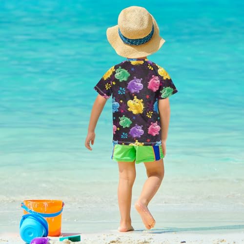 Boys Rash Guard Short Sleeve UPF 50+ Colorful Hippo Pattern Design Quick Dry Swim Shirts Swimwear for 3-12Y 3