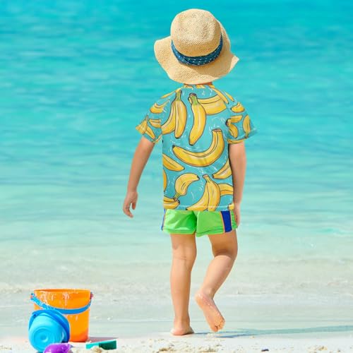 Kids Swimsuit Blue Yellow Banana Fruit Sunscreen T-Shirts Swimwear Sets UPF 50+ 4