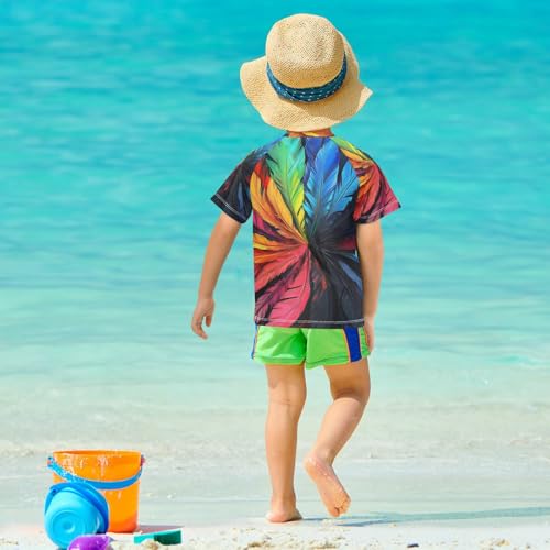 Boy Swimsuit Feather Colorful Sunscreen T-Shirts Swimwear Sets UPF 50+ 1