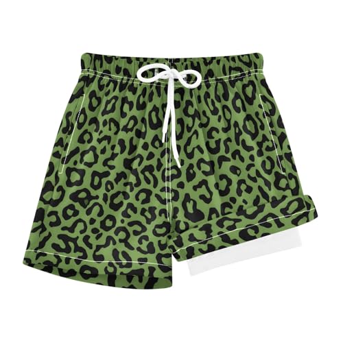 Bolaz Toddler Boys Swimwear Swim Trunks with Compression Liner 4T Green Leopard Cheetah 4