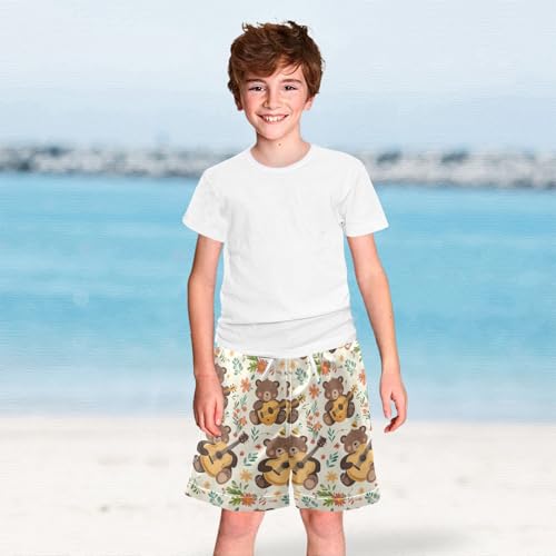senya Flower Bear Play Guitar Boys Swim Trunks Toddler Shorts Swimwear Boardshorts 6