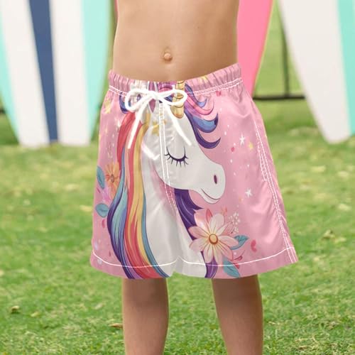 Pigsaly Boys Swim Trunks Rainbow Unicorn Pastel Boys Board Shorts Swimsuit Swimwear Summer Bathing Suit XS 4