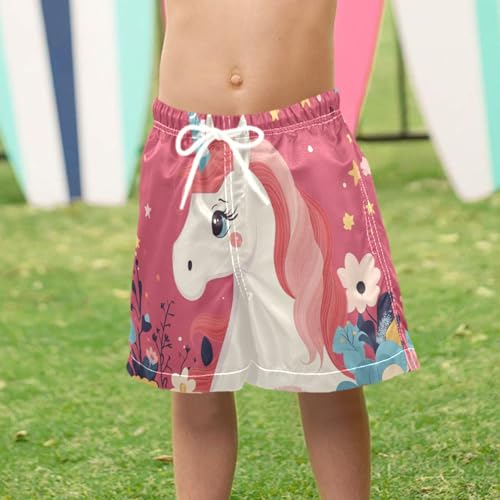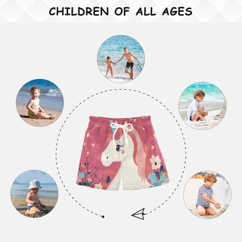 Pigsaly Boys Swim Trunks Unicorn Design Flowers Boys Board Shorts Swimsuit Swimwear Summer Bathing Suit 4T 6
