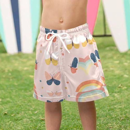 Pigsaly Boys Swim Trunks Rainbows Butterflies Pink Dots Boys Board Shorts Swimsuit Swimwear Summer Bathing Suit 4T 3