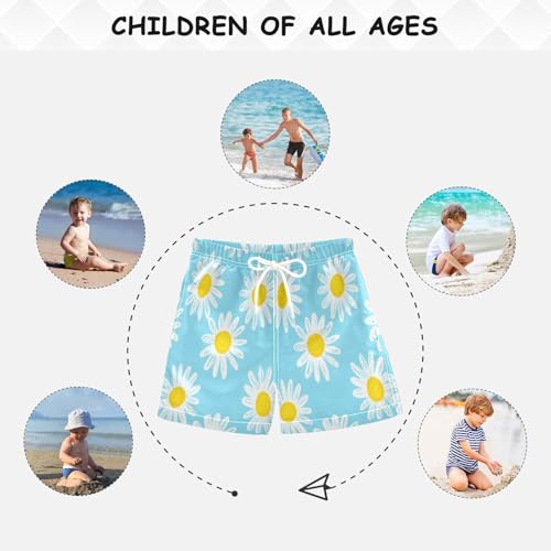 Kids Swim Trunks for Boys, Anti Chafe Swim Trunks for Boys 2 T, Daisies Light Blue 6