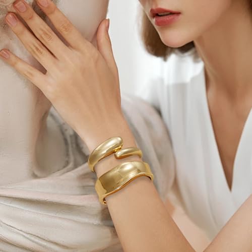 HOT ! BROCC 2-4PCS Gold Plated Cuff Bangle Bracelets for Women Trendy Hinged style Adjustable Cuff Bangle Bracelet Wrist Wrap Irregular Minimalist Jewelry Set