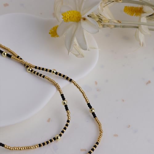 Gold Beaded Gemstone Stackable Stretch Bracelets for Women, Dainty Boho Handmade Natural Stone Seed Bead Ball Layered Bracelet Summer Beach Jewelry Gift 5
