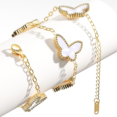 • Perfect color choice:It is charming and fashionable, and you can match it with any kind of clothes. The Butterfly Clover Leaf Bracelets is attached to the chain and won't slip.This 18k gold plated women’s bracelet combines a minimalist aesthetic with timeless elegance to create an eye catching piece of women’s jewelry that you can easily pair with any clothing to elevate the look of your wardrobe.