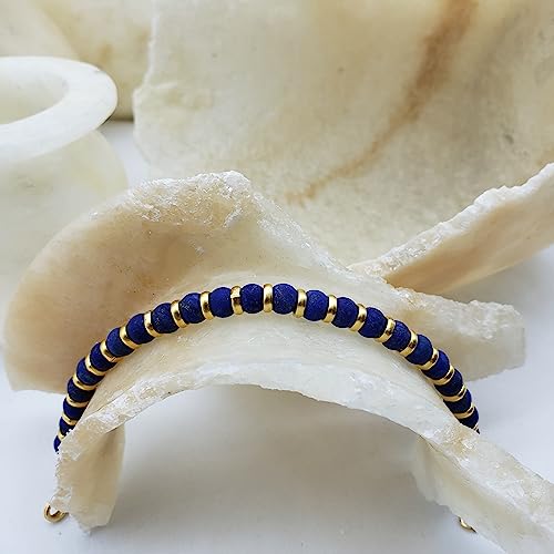 • This Egyptian inspired bracelet features frosted lapis lazuli beads.