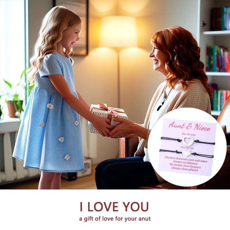 • Happy Mothers Day Gift for Aunt Auntie from Niece: This niece and auntie bracelet comes with 2 matching heart bracelets for aunt and niece, 1 meaningful card, the blessing card with some heartwarming sentences, as long distance aunt auntie gifts, happy birthday auntie aunt gifts from niece, best aunt auntie ever gifts from niece, aunt and niece matching gifts