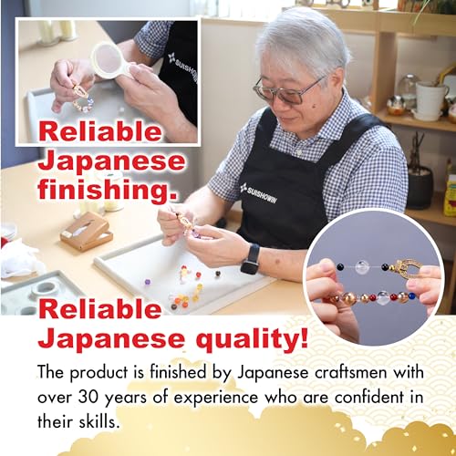 Japan lucky charm money luck bracelet horseshoe crown beads fengshui gold crystal wealth japanese traditional stretch men women unisex natural stone positive energy cool present casual 6