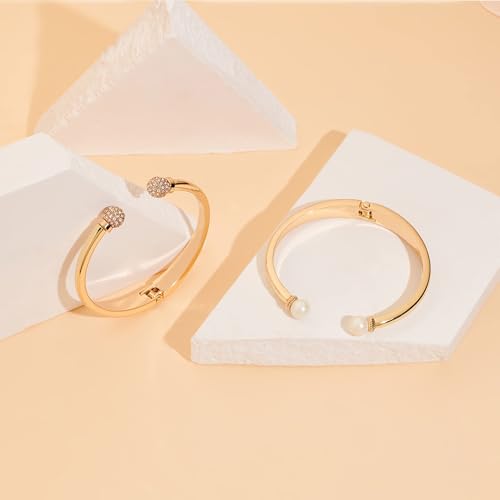 2Pcs Silver Cuff Bracelet for Women Adjustable Bangle Bracelets Set with Imitation Pearls and Rhinestones 4