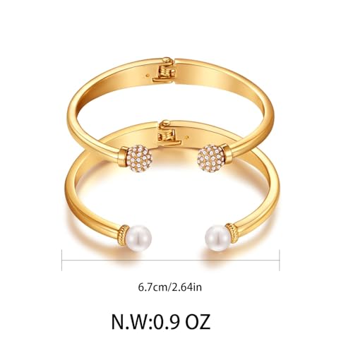2Pcs Silver Cuff Bracelet for Women Adjustable Bangle Bracelets Set with Imitation Pearls and Rhinestones 2