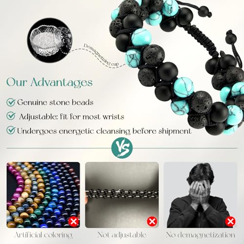 • ♥ Expertly Sourced Materials ♥ Our Matte Onyx, Turquoise & Lava Stone Each bracelet is crafted from 100% natural, high-quality stone—hand-selected for its energy and beauty. Wear the power of nature. Lava beads also can hold essential oils.