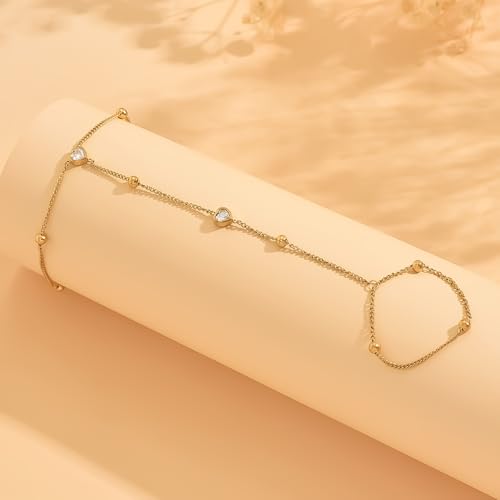 • Elegant Hand-Draping Design:Adorned with golden beads and heart - zircon pendants on a gold chain, this hand chain has a layered style. The gentle sparkle and finger loop bring a romantic, feminine touch to your adornment