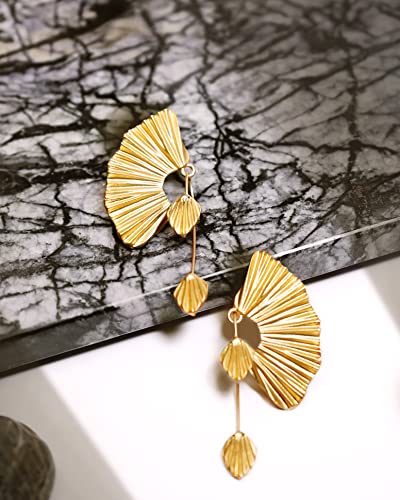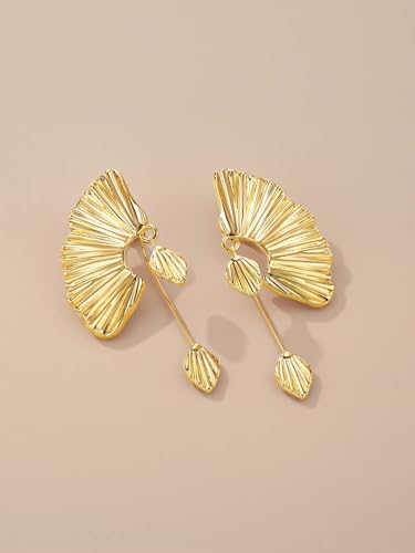18K Gold Statement Earrings for Women by SNGIA, Chunky Dangle Leaf Fan Shape Flower Earrings, Vintage Boho Accessories by SNGIA, 18K Gold Plated Trendy Fashion Jewelry Gifts 4