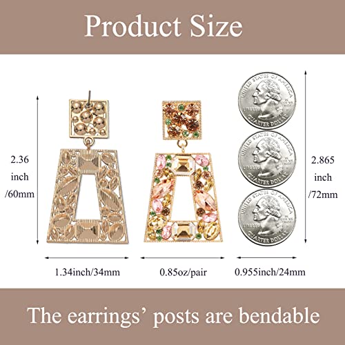 Rhinestone Rectangle Statement Earrings Colorful Crystal Geometric Drop Dangle Earrings for Women Prom Party 2