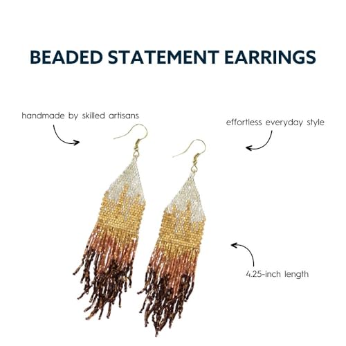 HOT ! INK+ALLOY Beaded Earrings for Women Dangling, Claire Luxe Seed Bead Fringe Statement Boho Earrings, Hypoallergenic Handmade Jewelry for the Modern Bohemian, 4.25-Inch