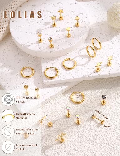 HOT ! LOLIAS 20G Cartilage Earrings Set for Women Men Surgical Steel CZ Opal Small Hypoallergenic Flat Back Stud Earrings Hoop Chain Dangle Conch Daith Helix Tragus Cartilage Piercing Jewelry 33Pcs