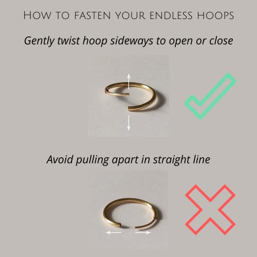 • GOLD HOOPS - Lightweight & large gold hoop earrings for women 14k real gold are delicate, measuring 33mm (1.3 inch) in diameter. Solid gold hoop earrings have endless closures, they are flexible & comfortable to wear without pulling on your lobes.