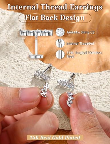• Internally Threaded Design : Compared with the flat back design at the back, the Internally Threaded design at the forward can easily align the holes and put the top on easily. And because of the thread design, you don't have to worry about the cartilage earring falling off easily, as long as you Tighten it with a little force.These tragus piercing jewelry offer convenience and comfort, ensuring a comfortable experience even during sleep, sports activities, or shower