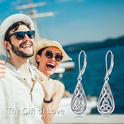 HOT ! Celtic Earrings Gifts for Women Sterling Silver Irish Celtic Knot Teardrop Dangle Earrings