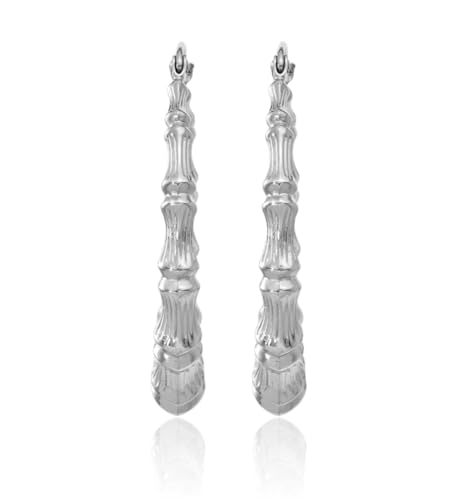HOT ! 14K Solid White Gold Bamboo Round Large Hoop Earrings